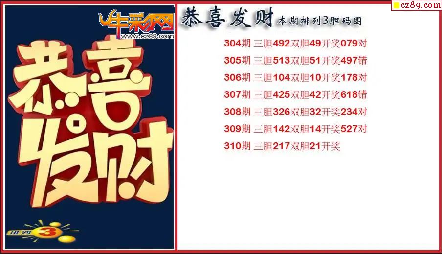 > 2025310期P3恭喜发财胆码图